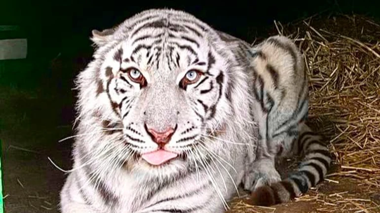 Ледь не помер у неволі: врятований з Харківщини білий тигр Алекс знайшов нову домівку в Британії