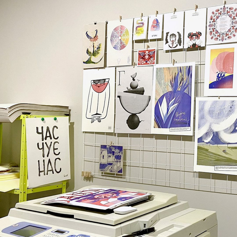 Унікальні запрошення на подію створювала студія та друкарня Risodentsia, і одна з локацій маркету присвячена саме їй. Це перша в Україні студія, яка друкує на різографі – машинці, яку часто називають автоматичним трафаретним друком. Це дозволяє експериментувати з кольорами, текстурами та розробляти екологічний дизайн.