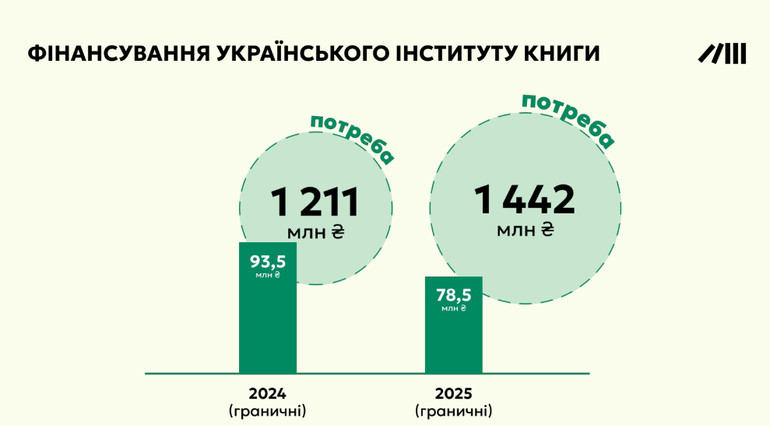 Проєкт бюджету на 2025 рік вже подано Урядом і оприлюднено на сайті Верховної Ради. Поки видатки на культуру помітно скорочують, це стосується й УІК. Всього виділили 78,5 мільйона гривень, коли потреба становить 144,2 мільйони гривень, йдеться у документі, представленому Українським інститутом книги на КиївБукФесті. Пісдя оприлюднення проєкту Держбюджету до цієї суми додалося 100 млн грн саме на виплату державної допомоги нна книжки повнолітнім