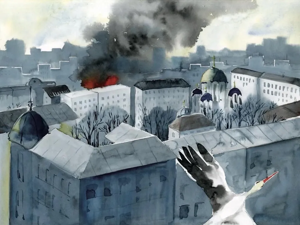 Видання не містить тексту: її історія має лише зображення про наслідки війни в Україні. Свідком подій війни стає лелека, що навесні повертається до свого зруйнованого дому.
