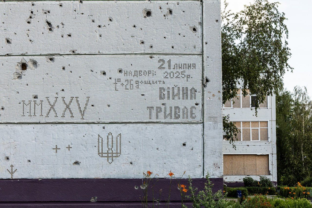 Сумський художник створив стритарт на фасаді пошкодженої школи у Харкові