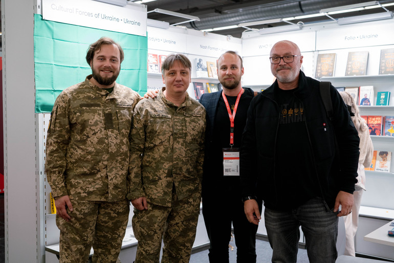 Кожна країна має свій стенд, а окремо є ще великі стенди видавництв та цілий павільйон для літературних агентів. Тисячі людей щодня купують книги, читають книги, говорять про книги. Як виділитися на цьому конкурентному ринку? Як донести до іноземців основний меседж – українська культура та українська література не лише живе, а розвивається під час війни. Українська книга переживає новий розквіт, а українські письменники в однострої – це наша нова хвиля.