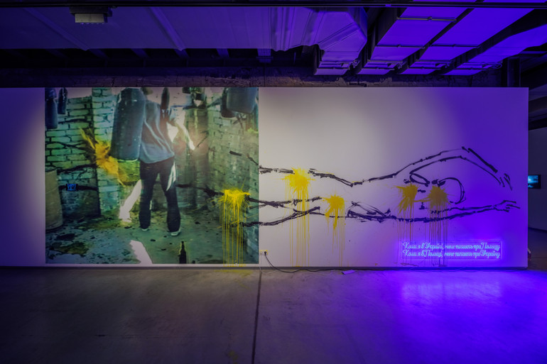 Нікіта Кадан: На вході до виставки ми бачимо фотошпалери з зображенням з твого відеоперформансу з 1988-го року. На фото 24-річний ти малюєш на цегляній стіні, а в просторі виставки цей малюнок виходить на білу галерейну стіну. Сама ця фігура мені чимось нагадала зображення родом з ранніх вісімдесятих, німецьких "нових диких" (Neue Wilde – художній рух західнонімецького неоекспресіонізму початку 1980-х, що виник як реакція на концептуалізм і мінімалізм – прим. ред.). У тебе ці взірці були перед очима. На що ще ти тоді орієнтувався? І якщо можеш згадати, чого ти тоді хотів?