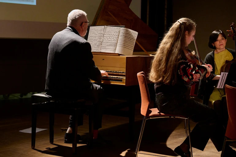 На сцені музиканти, які знаються на історично поінформованому виконавстві. Солістка, британсько-українська скрипалька Софія Колупов, грає на інструменті 1670-х років. Їй акомпанують шведи Бйорн Єфверт на чембало й Міме Ямахіро Брінкманн на бароковій віолончелі — досвідчені виконавці старовинної музики. Повної партитури сонати Березовського не існує: автограф твору містить лише партії скрипки й баса. Це залишає чималий простір для варіацій і робить реконструювання таких творів викликом не лише дослідницьким, а й творчим. Соната у виконанні тріо звучить делікатно й водночас невимушено, майже імпровізовано. Ґраве триває якісь три хвилини, та лишає приємний післясмак.