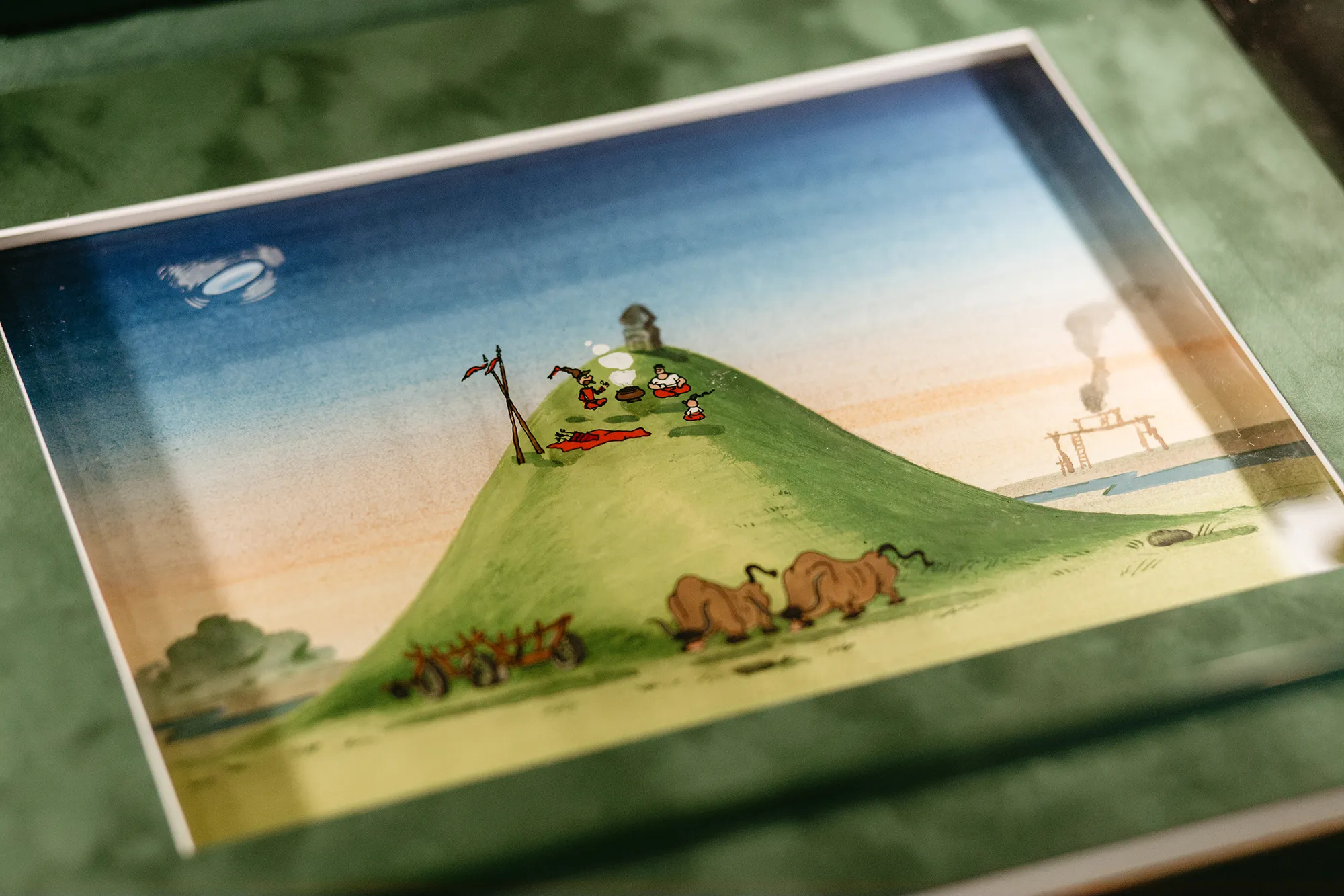 Серед експонатів є і сторінка з історії української анімації. На одному зі стендів розміщений малюнок-фаза до мультфільму студії "Київнаукфільм" "Як козаки інопланетян зустрічали" 1987 року. На ньому троє знайомих героїв – Грай, Тур і Око – стоять на схилі пагорба.