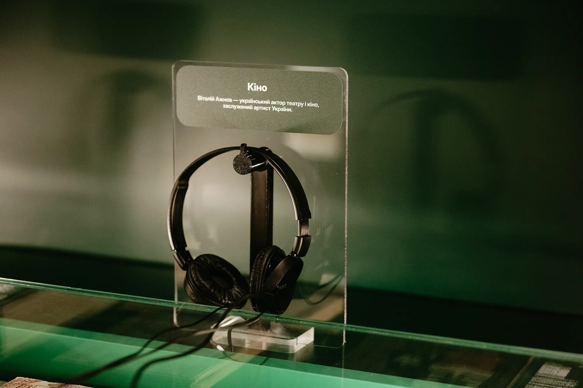 Таких "слухавок" на виставці кілька. Через них відвідувачі слухають архівні записи, зокрема мелодію "Щедрика" Миколи Леонтовича, уривки балетної музики та народного співу.