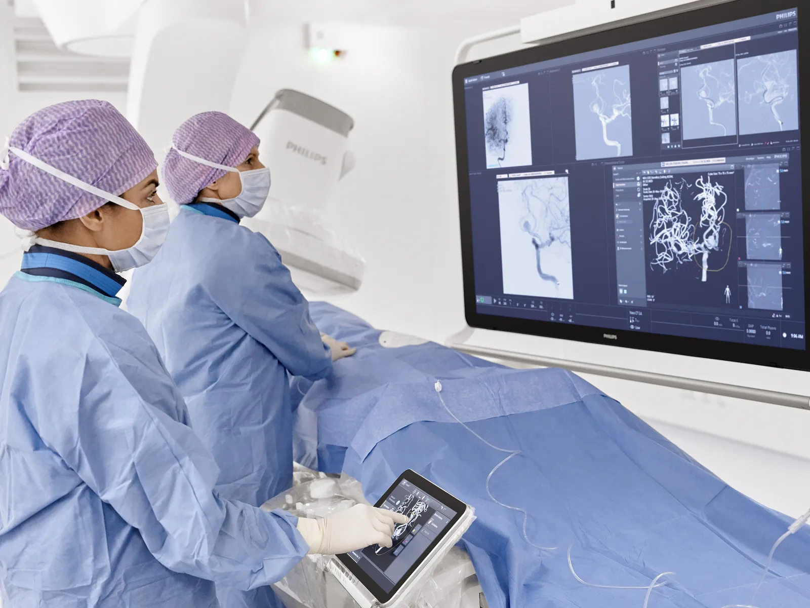 Обстеження судин та інтервенційні процедури на Philips Azurion є ефективними завдяки якості зображення, а також ергономіці використання розробленої для максимальної зручності співпраці лікарської команди та, відповідно, швидкості лікування. Новітні технології дозволяють проводити сканування елементів малих судин з винятковою чіткістю. Водночас система також підтримує візуалізацію всього тіла пацієнта і забезпечує доступ до нього з усіх боків.