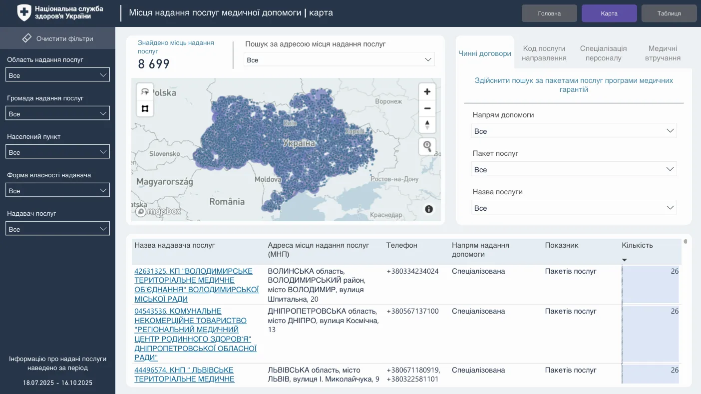 лікарні України, які мають договір з НСЗУ на пакет "Медична допомога при гострому мозковому інсульті". Якщо ви потрапляєте в лікарню машиною "швидкої" – в кожному регіоні є розроблені маршрути пацієнтів, і "швидка" при встановленому діагнозі знає, до якої найближчої лікарні, законтрактованої на інсульт, привезти.