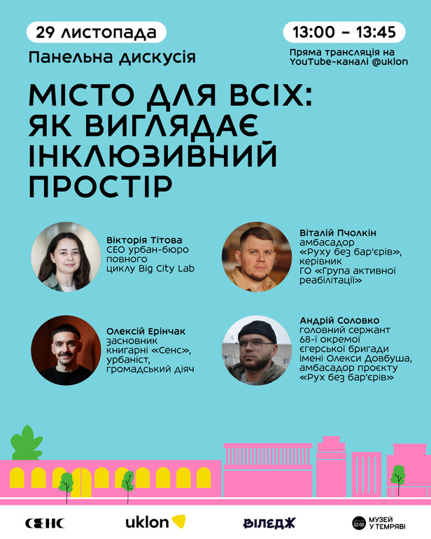 Дана ініціатива, яку спільно створюють один з лідерів міської мобільності компанія Uklon, книгарня Сенс, медіа про сучасні міста "Віледж" та музей у темряві "Третя після опівночі" має на меті сприяти формуванню в суспільстві культури безбар'єрності та інклюзивності, де людяність, емпатія та повага стають основою спільного простору нашого існування та взаємодії, а міста та інфраструктура мають відповідати новим викликам, перед якими постала країна.