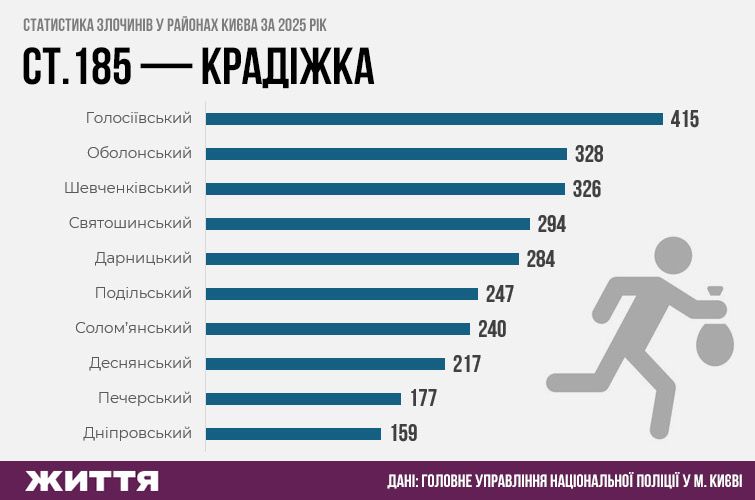 Статистика різних злочинів у районах Києва за 2025 рік