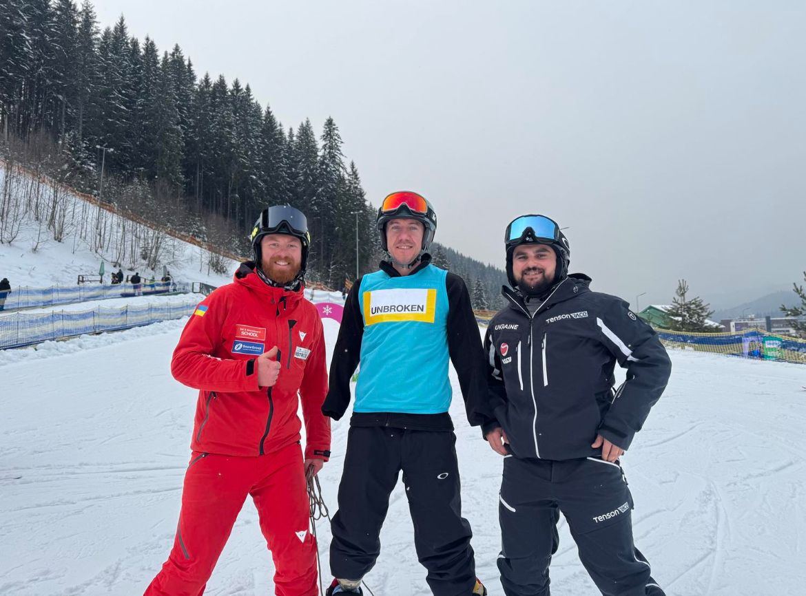 Микола вирушив до Буковелю разом із командою UNBROKEN. У молодості він займався біатлоном, тому катання стало для нього особливо важливим, кажуть у центрі.