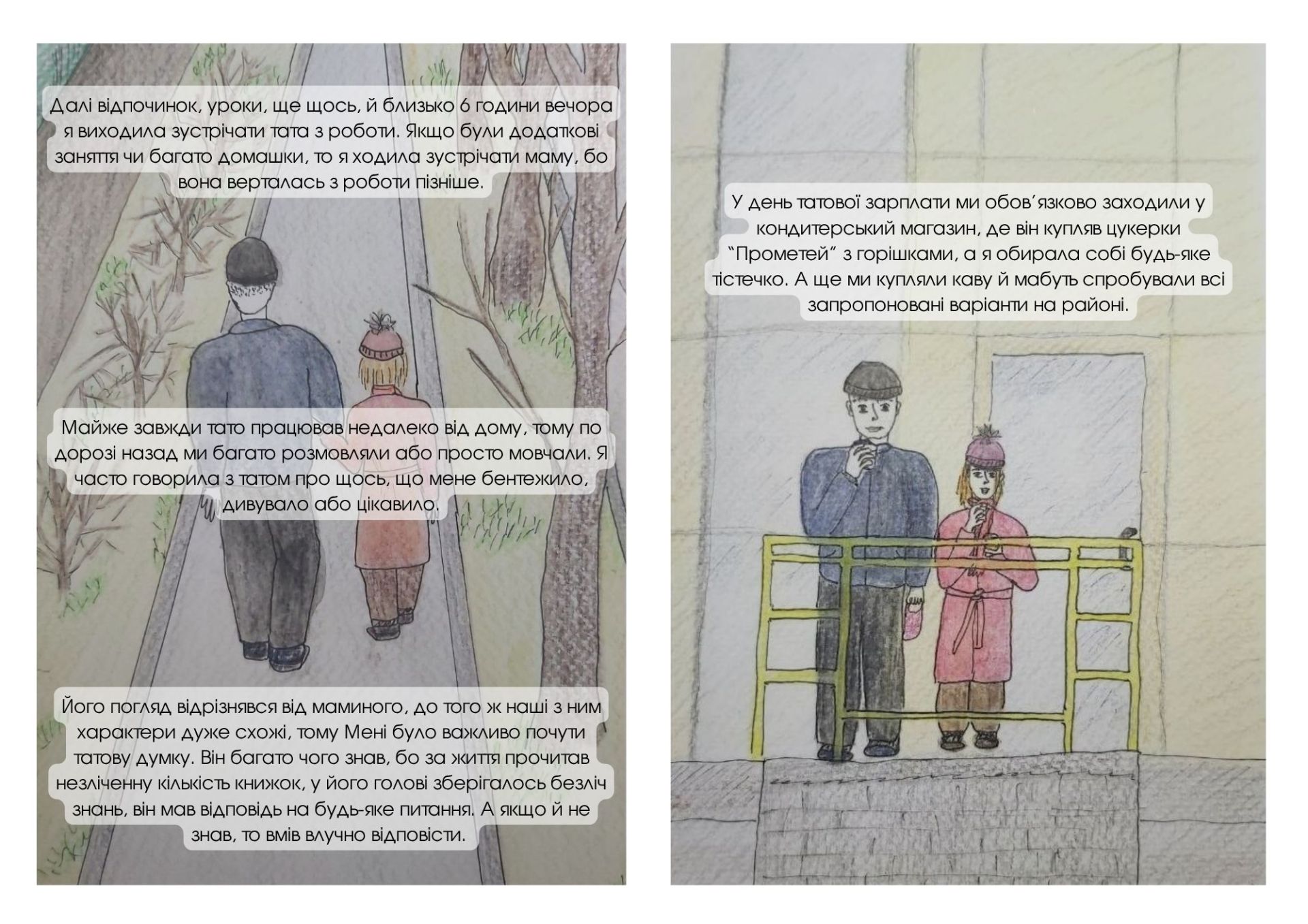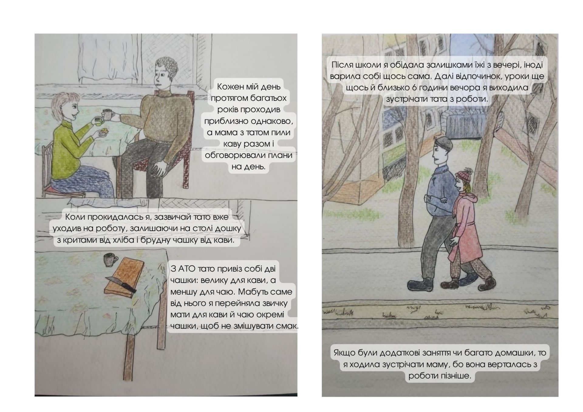 Вона вирішила створити мальопис – серію малюнків про батька й доньку. Про те, як він узяв на себе значну частину побуту, поки мама навчалася й працювала.